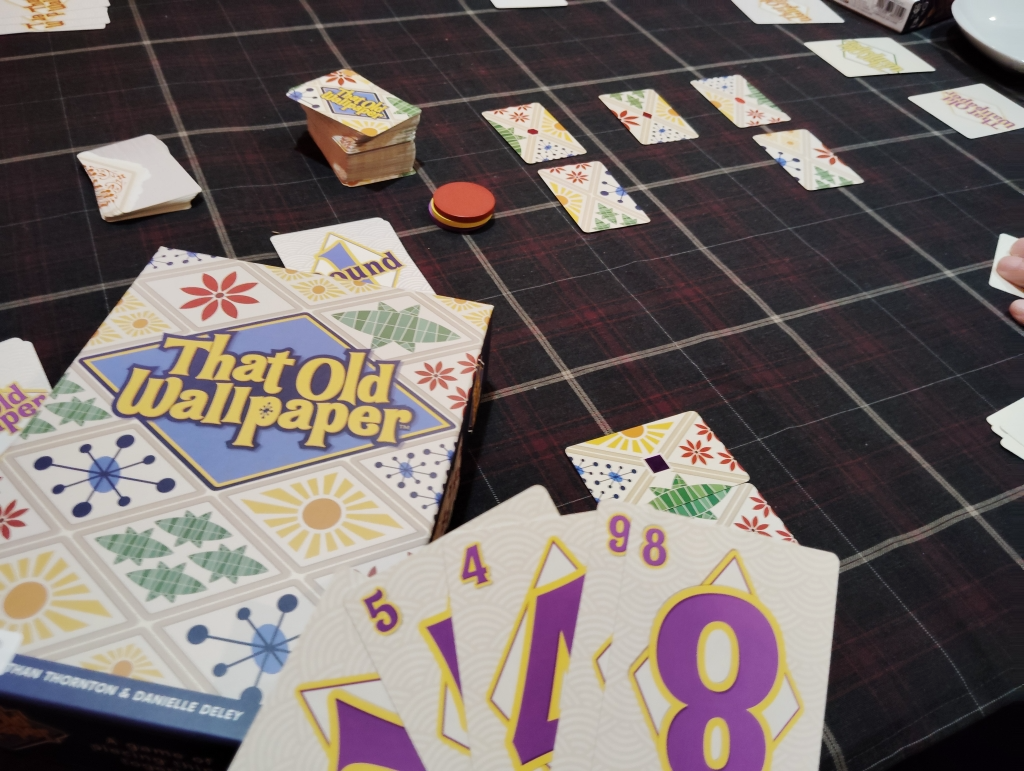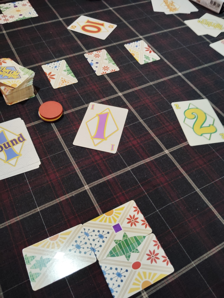 壁紙は数字カードを1枚選んで同時に公開して、数字の大きい順に端から獲得して自分の前に配置していきます。