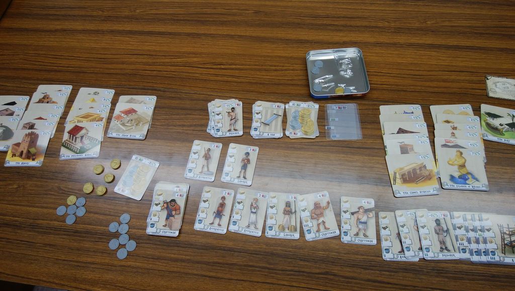 ゲーム内容について、プレイヤーは古代の建築士となり職人や奴隷を雇って教育したりしながら様々な道具や家屋やモニュメントを建造してお金や名声(得点)を得ます。得点を一番手に入れた者が勝利です。