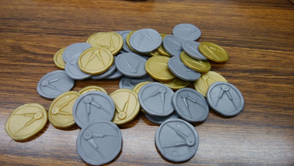 ゲームに使用するコインはよくある厚紙製ではなくプラスチック。重さはありませんが、厚紙のそれより耐久性と高級感はあります。
