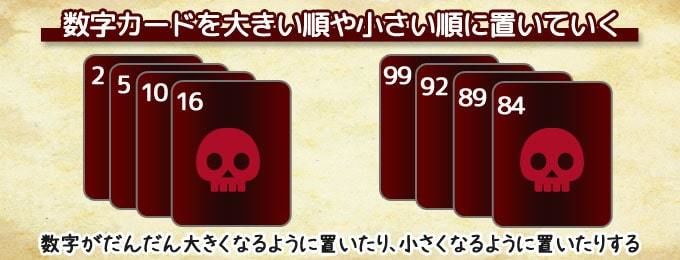 ザ・ゲームは、数字カードを「大きい順」や「小さい順」で置いていく協力ゲームです。