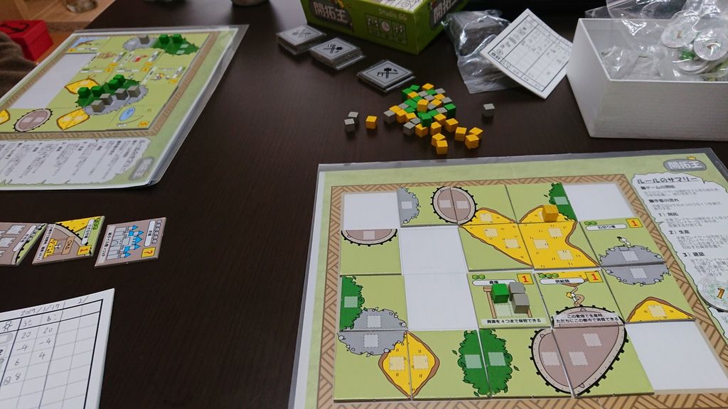 軽い割にはよくシステムがまとまっており、カルカソンヌ的なタイル配置の面白さや、サンファン的なアクションの有効活用を楽しむことが出来ます。