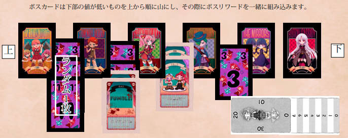 ボスはHPがあるだけで、基本的には何もしない。自分の手札の山の中に攻撃に使うカードとダメージを受けるカードが入っていて、後者を引くとダメージを受ける。