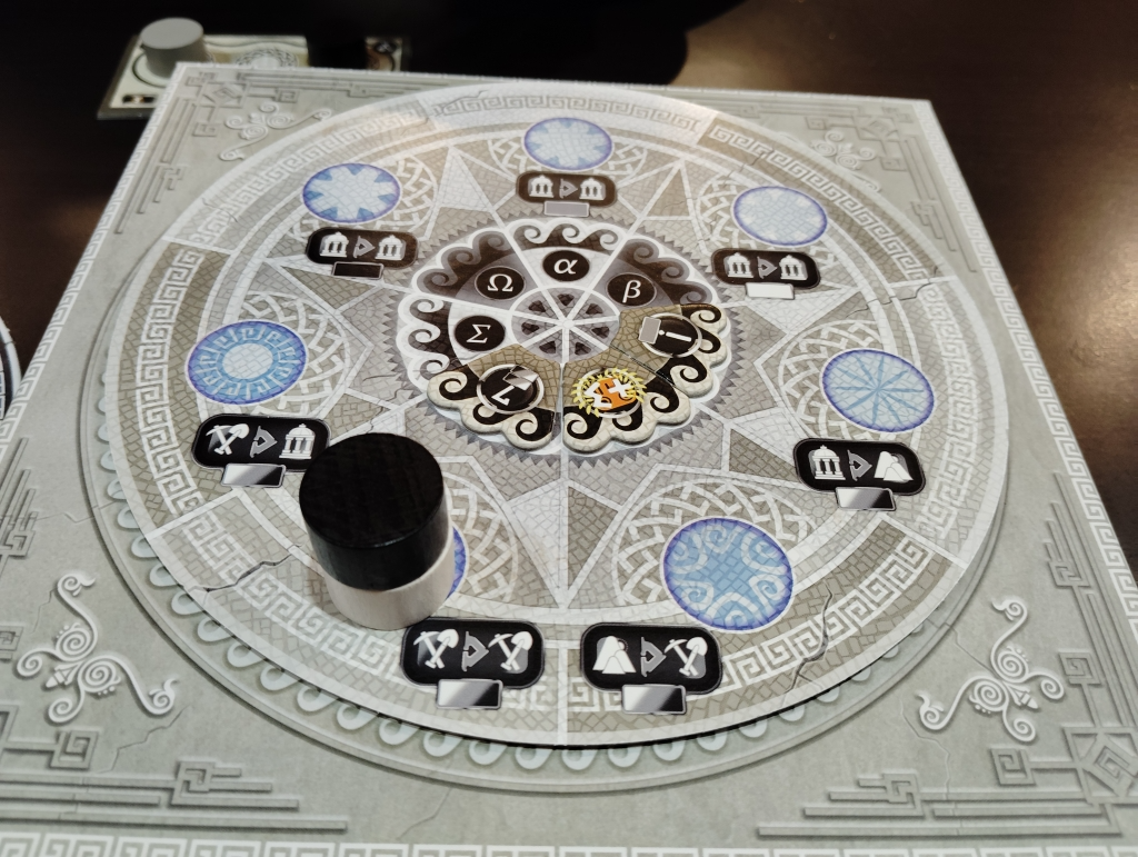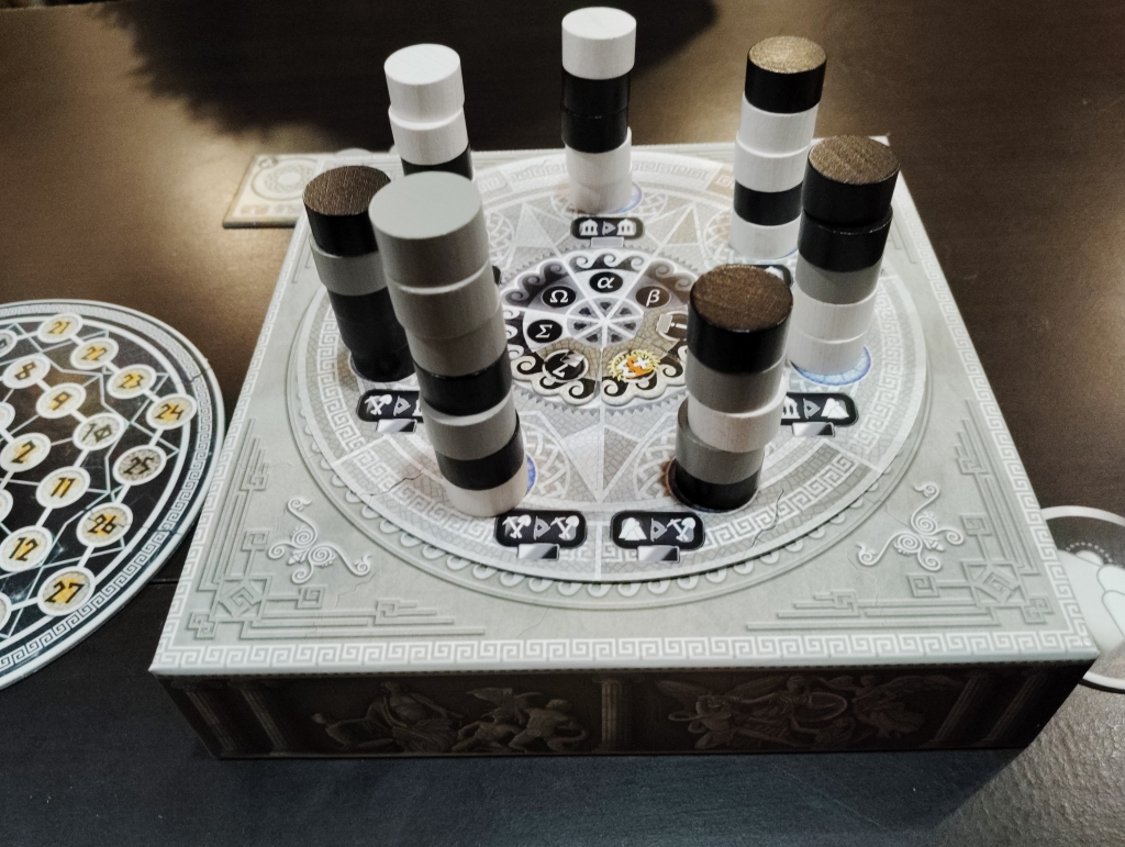 自分の石、相手の石、中立石の3種類あり7つのエリアに5つまで石を積むことができます(上級ルールで1エリアだけ7個になることもあり)。