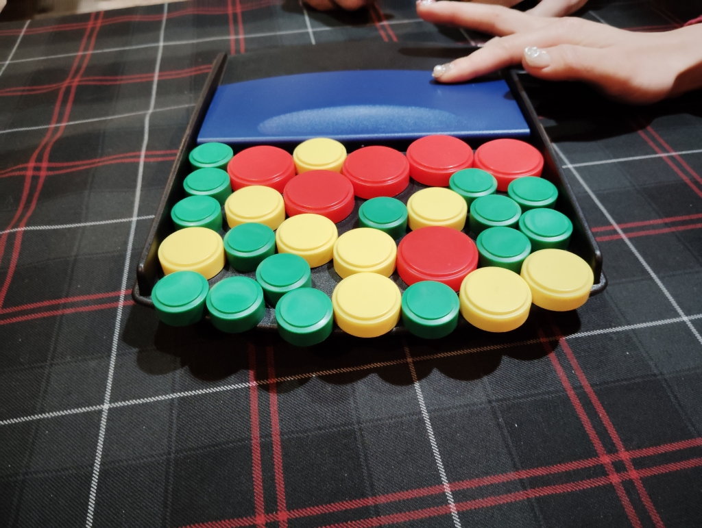 コイン落としを実行して、コインが落ちなければいいですが、落ちたコインが緑色なら1チップ、黄色なら2チップ、赤なら3チップを支払うことになります。