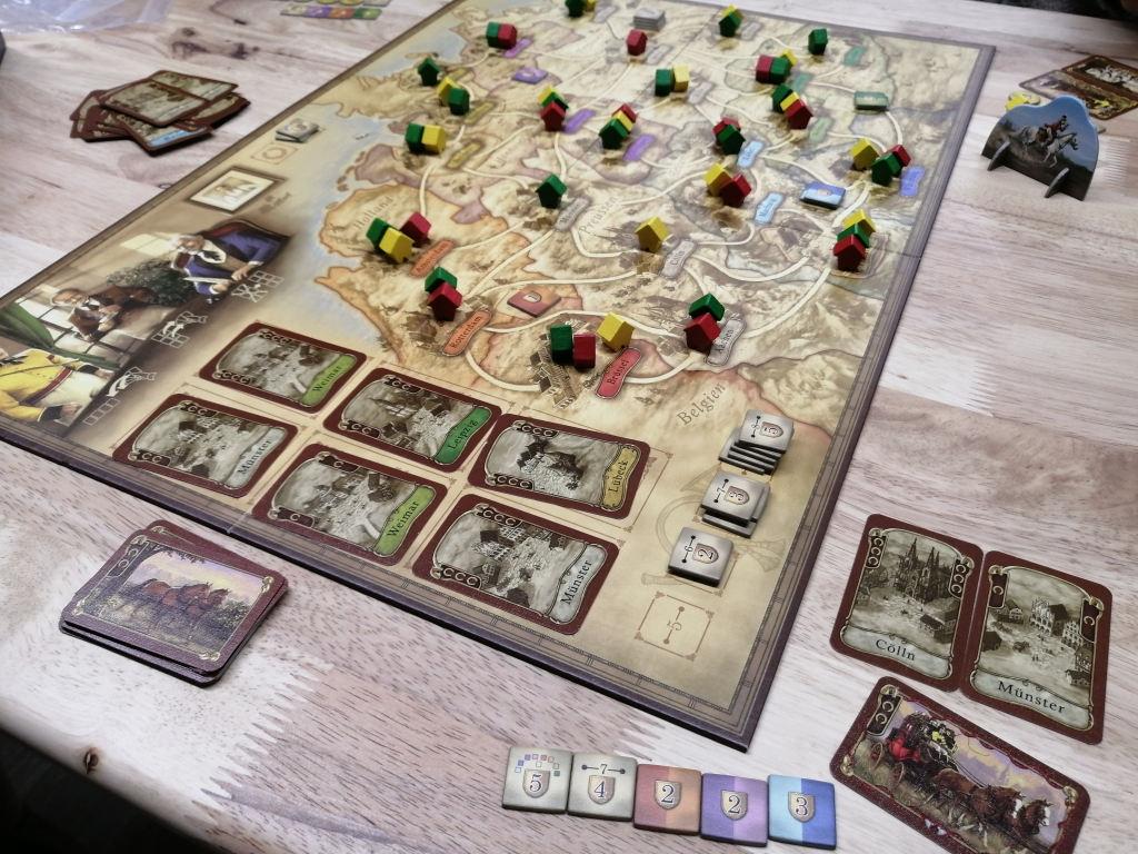 郵便馬車のルールの基礎は変わらずだが、都市を繋げるだけでなく繋げた都市に郵便物を届けるための移動力の準備が必要となった。
