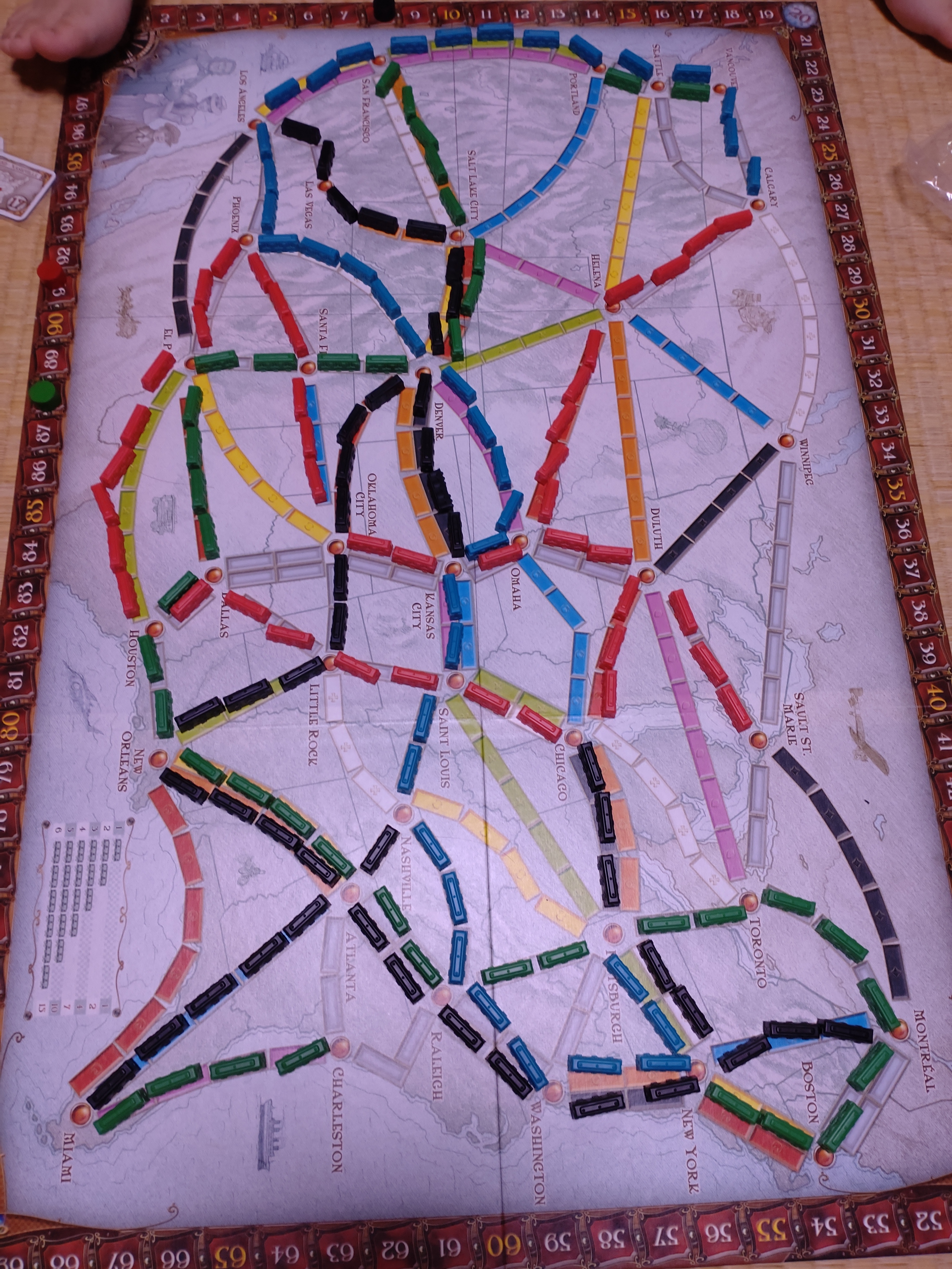 ゲームは、プレイヤーの誰かの「列車コマ」が2個以下になれば、全プレイヤーが1回ずつ手番を実施してゲーム終了になります。