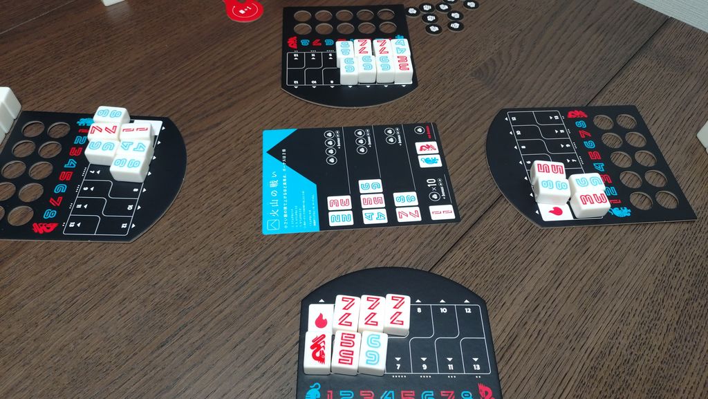 ゲームとしては面白いのですが、10点で勝利に対し、小さな和了でも最低3点、大きな和了だと8点と獲得点数が大きめで、ほぼ点数関係なく2回和了れたら勝ちという感じです。点数配分を調整して欲しかったですね。10点で勝利ではなく、15点か20点がバランス的に良いと思いました。