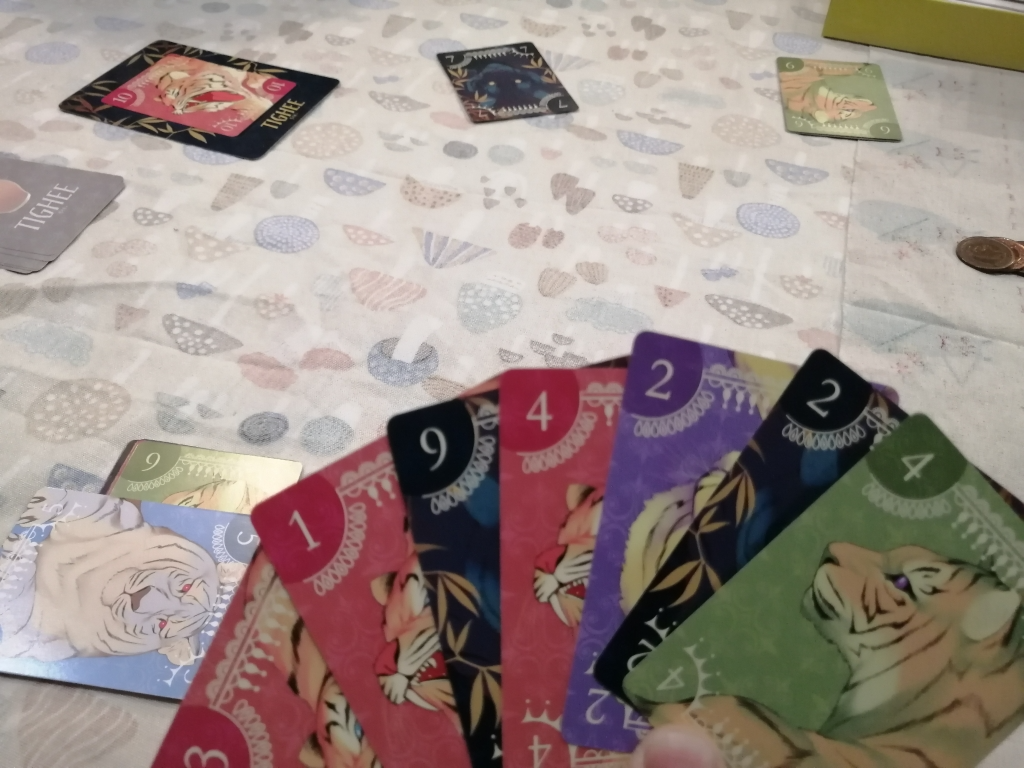 違う色のカードが1枚でもプレイされたら数字の小さいカードが勝ちになり同数ならあと勝ち。