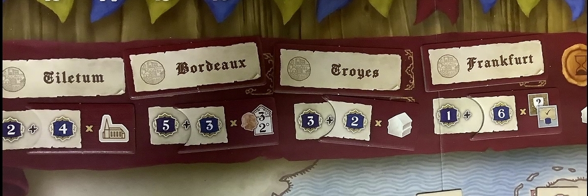 大聖堂の入手、商館の建設、建築ゴマの設置、それぞれに最終得点やボード上部にある見本市得点フェイスの得点源になる