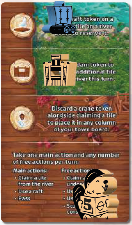 ダムトークンを1つ捨てて、建物の配置ルールに従って、このターンに川から追加でタイルを1つ獲得します。