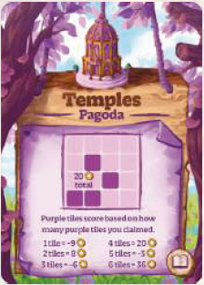 パゴダ 紫タイルは、獲得した紫タイルの総数に基づいてスコアリングされます。紫タイルは、街ボードのどこに配置されていても関係ありません。