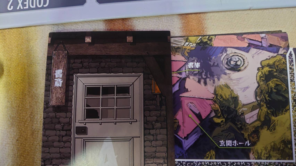 本題の件について、気になってHobby Japanさんに連絡しましたら、下記の添付のように回答を頂きました。地図カードと場所カードで名前が違ってますが、書斎で他は統一さているので、誤記とのことでした。その後、このやり取りをこちらに乗っけてもイイか返事を待ちましたが、返答がなかったので、念のためエラッタの誤記として立ててみました。遊ばれる方の参考になればと思います。