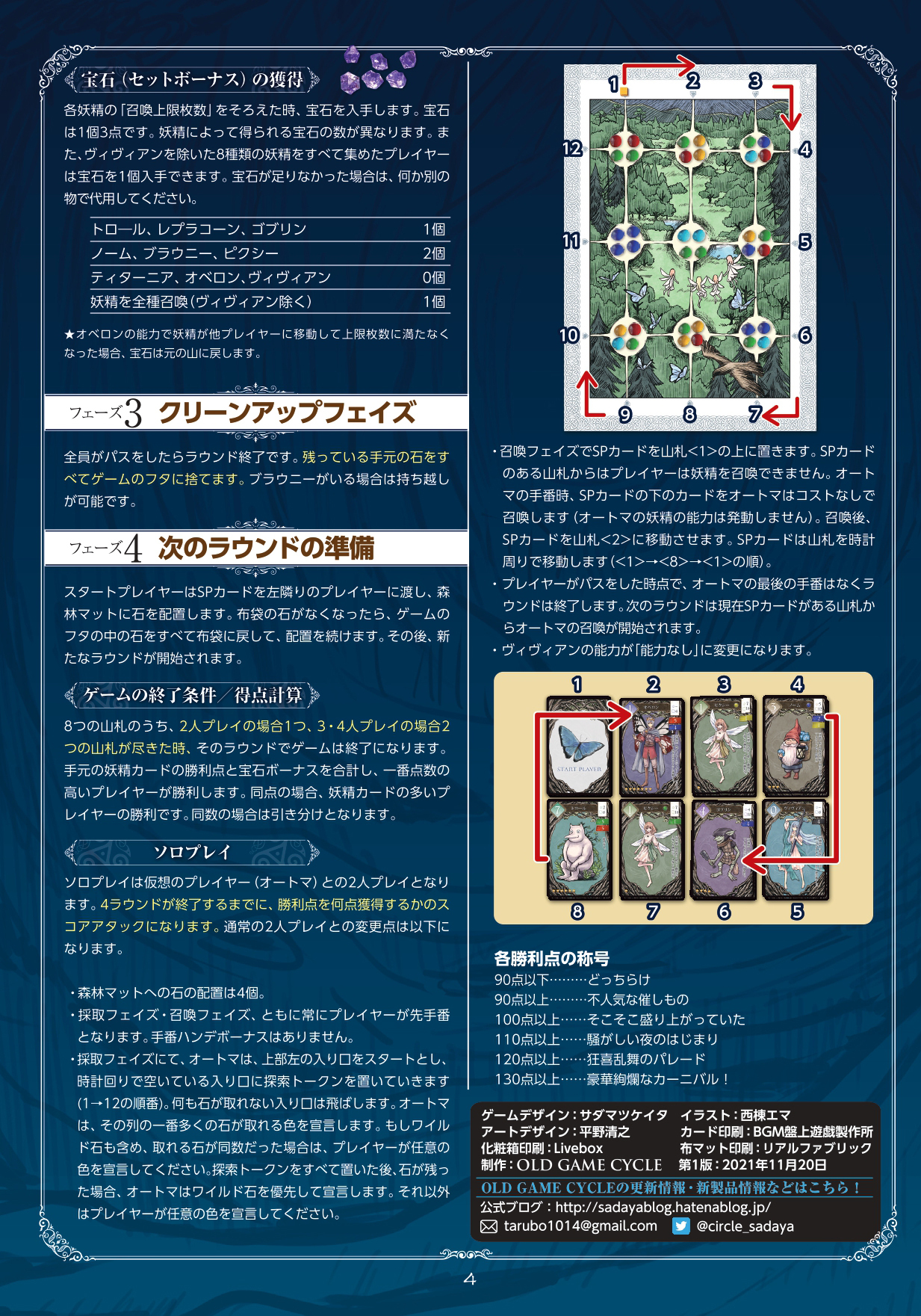 ティターニア~妖精と宝石の森~OLD GAME CYCLEさんのルール/インスト