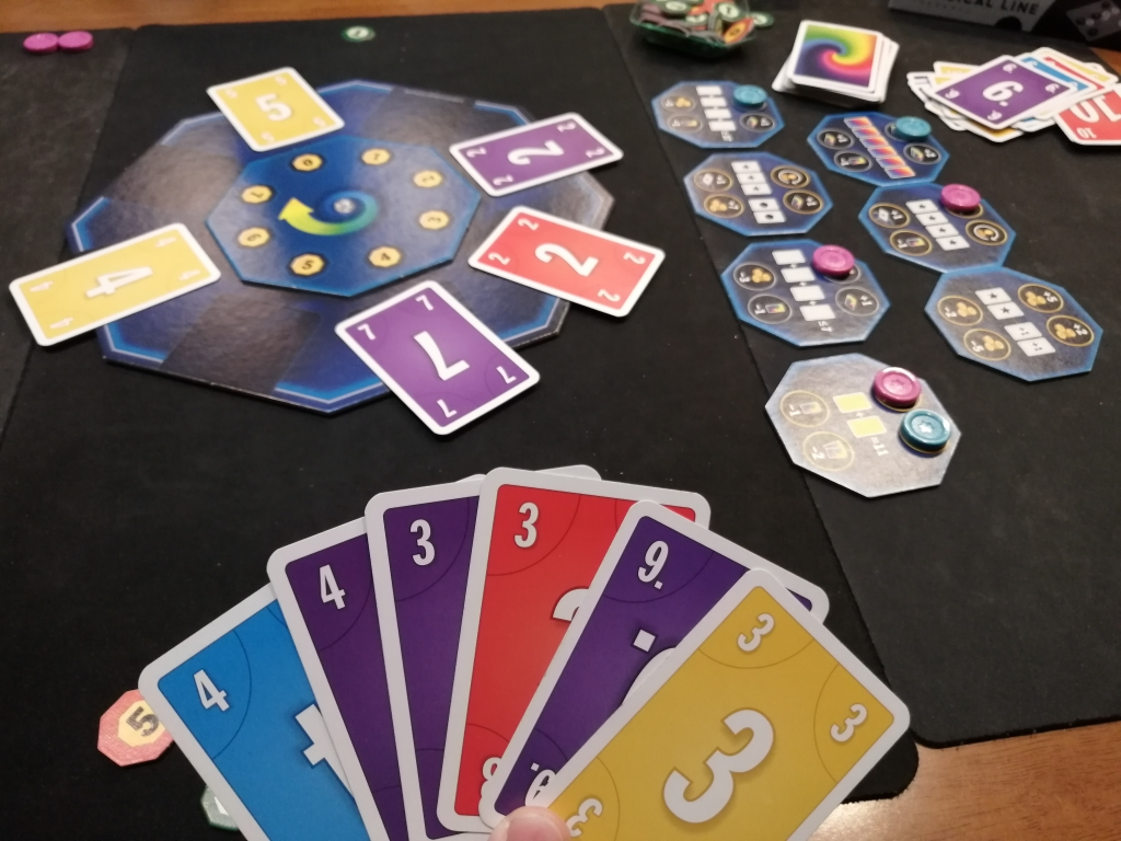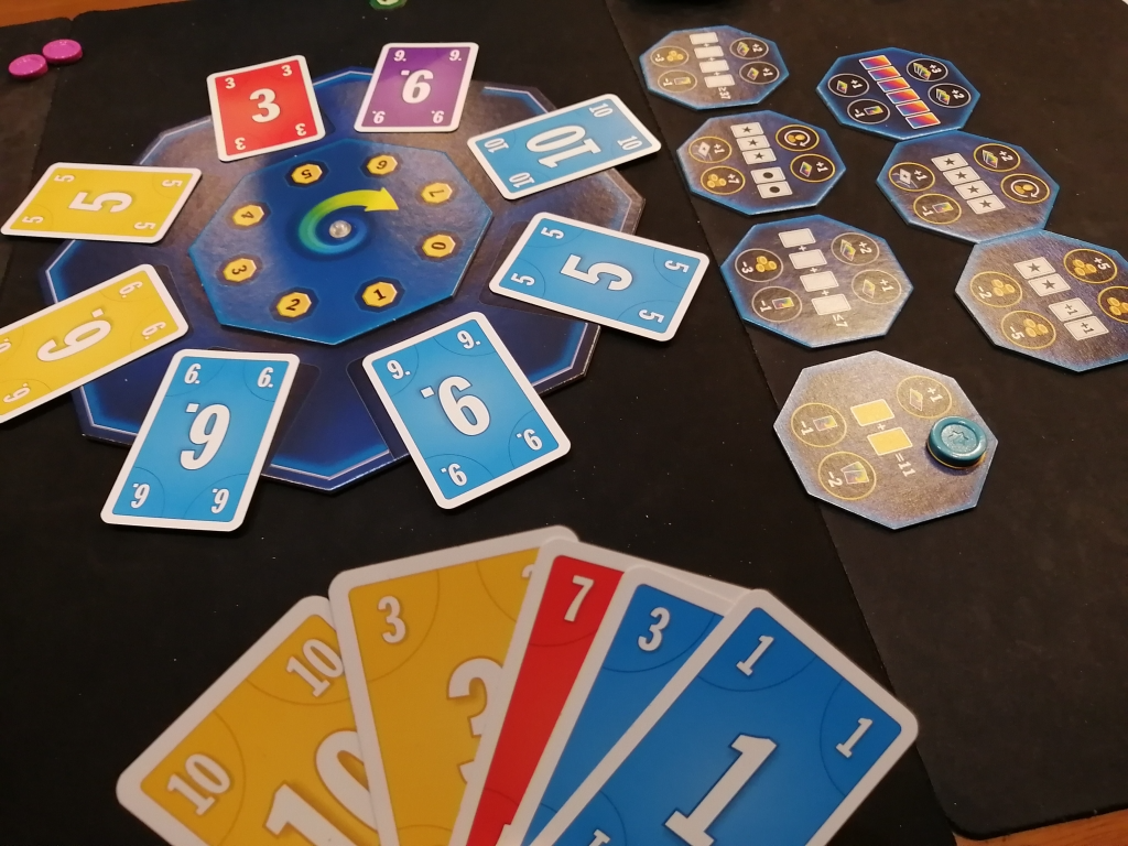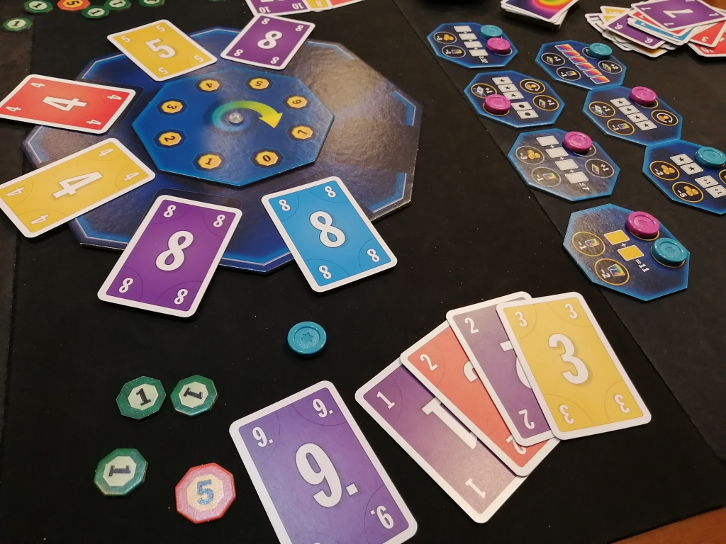 誰かがカードを獲得するとボードが回転するので、カードの価値が変化して0〜7になります。