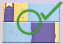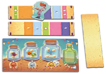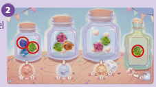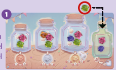 • ゲームボードの青い瓶は、各瓶がいっぱいになって空にするまでに、どれだけの角砂糖を置く必要があるかを示しています。青いガラス瓶には、示されている数よりも多くの角砂糖を入れることはできません。 • 各青い瓶には、異なる色の角砂糖しか入れることができません(1つの瓶に同じ色を複数入れることはできません)。 |