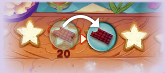 スタートピースの左下に描かれているケーキの材料を見て、対応するスコアマーカーを取り、スコアボードの開始スペースに配置します(20の面を下にして)。必要に応じて、マーカーは重ねて置くことができます。 |