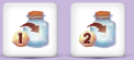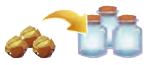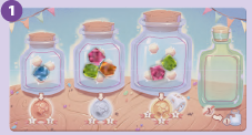 彼は交換瓶の中の3つの角砂糖をサプライからの紫の角砂糖1つと交換し、それを中央の青いガラス瓶に直接置きます。 |