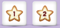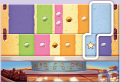 例: ベンがケーキを配置したときに作られた接続されたカラーストライプの中に星が1つあります。 |