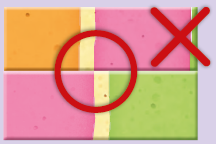 カラーストライプは、2つのケーキピースにある同じ色のストライプが重なると接続されたと見なされます。わずかでも重なっていればカウントされます。ただし、2つのカラーストライプが四隅の角同士でしか接触していない場合は、接続されているとは見なされません。