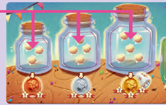 このラウンドで角砂糖または勝利点の星を全く受け取れなかった場合は、サプライからの角砂糖1つを緑の交換瓶に入れることができます。