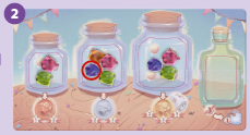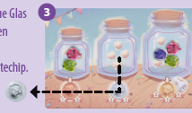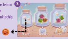 b.) 角砂糖をすべて取ったら、ボード上のガラス瓶に分配します。必要に応じて、ガラス瓶を空にすることで得られるポイントチップを取ります。
