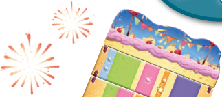 最後に、スコアマーカーが最も先に進んだプレイヤーがすべてのケーキのトップに立ち、ゲームに勝利し、報酬としてケーキトップで自分のケーキを飾ることができます。 |