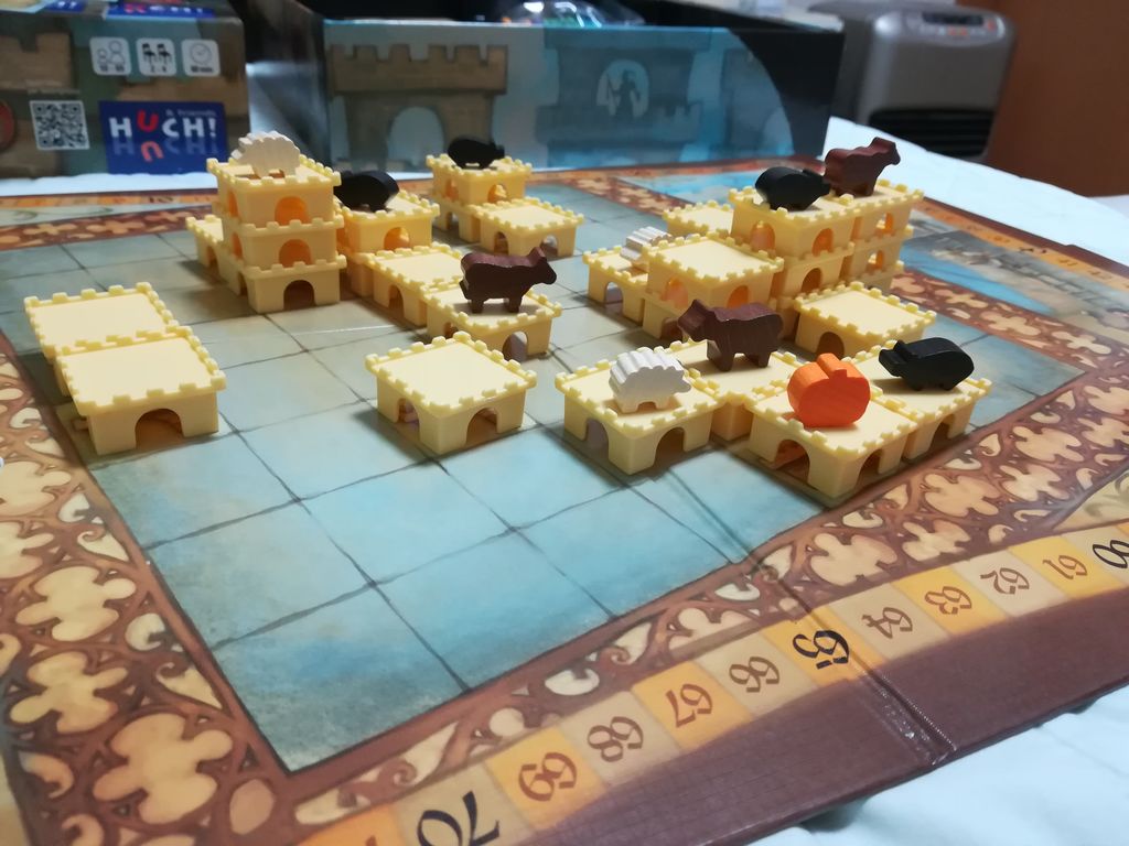 2~3人プレイだと盤面に余裕があるのでゆるくやり合う感じ。4人プレイだとごちゃごちゃと賑やかで、うっかりすると大きな城に相乗りしそこなって一人負けしたりします。