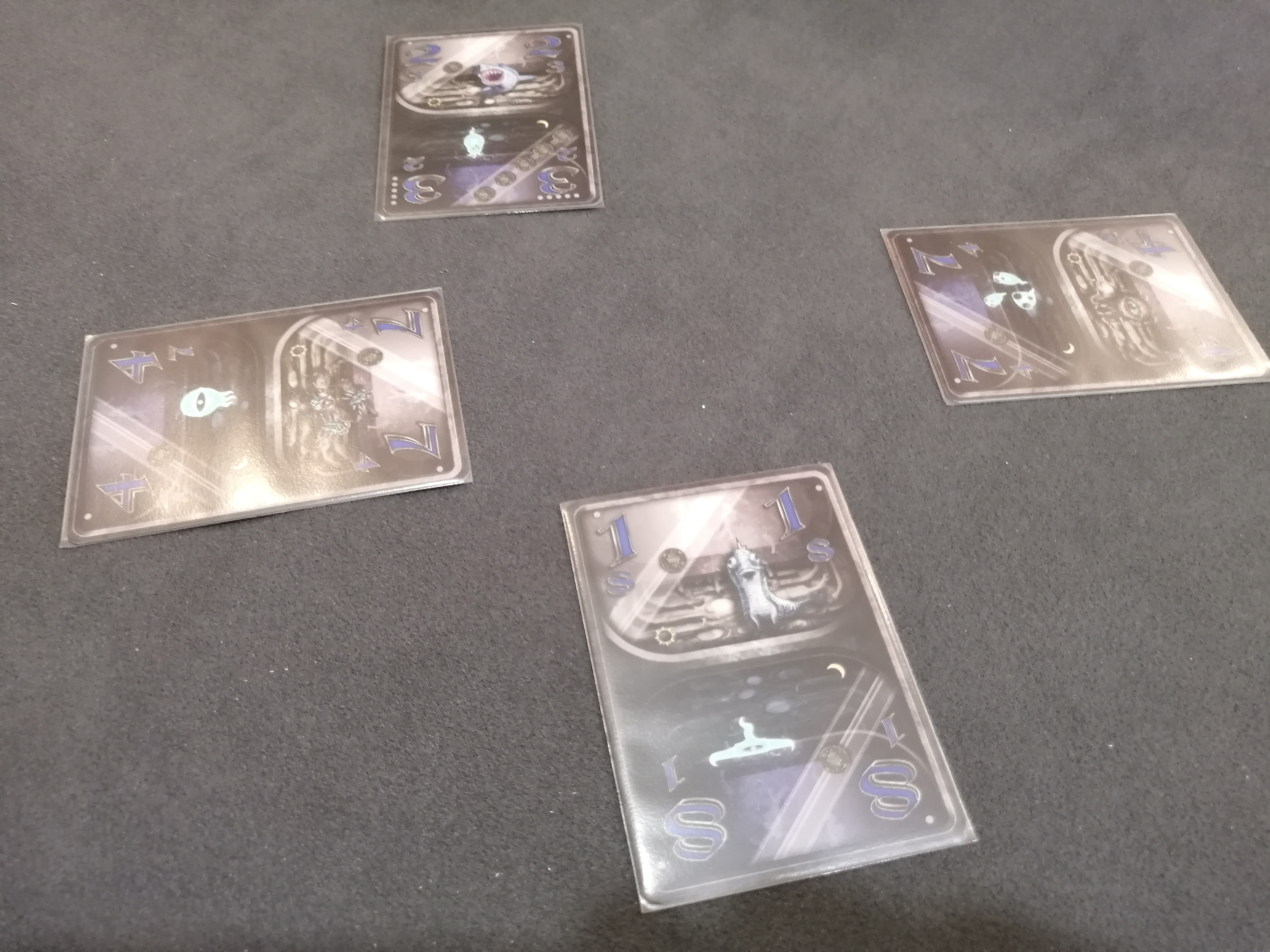 昼と夜とどちらでトリックを獲得していくかや黒のカードを使うか使わないにと少し難しさもありましたが、初プレイ4人で楽しめたトリックテイキングゲームでした。