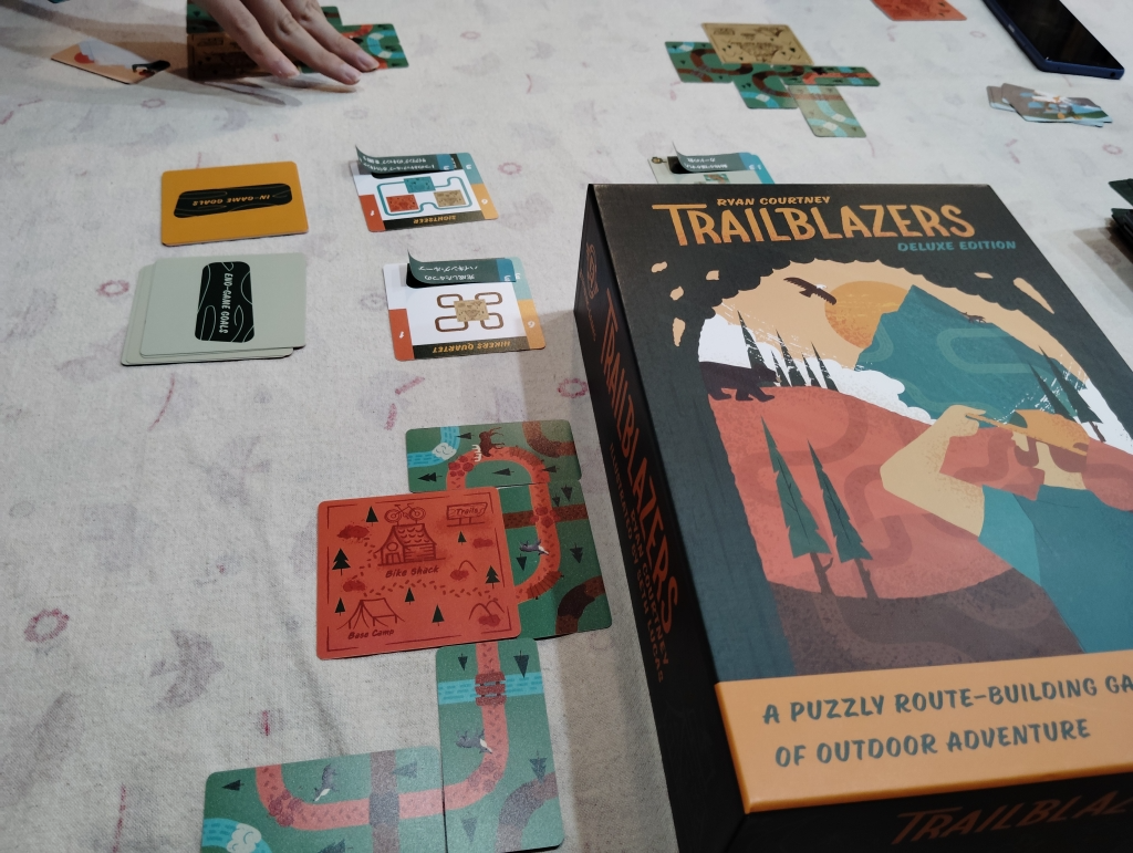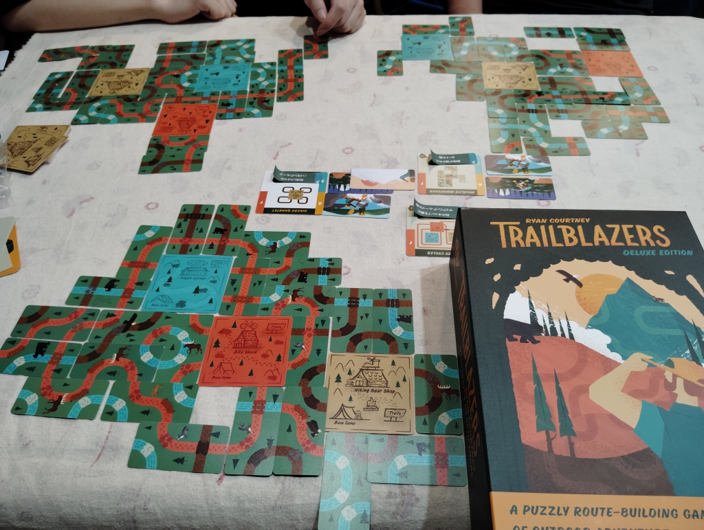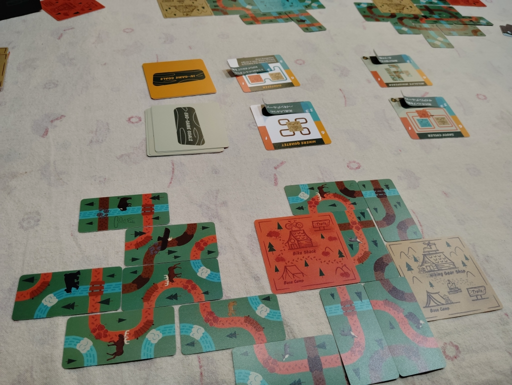 カードドラフトでキャンプ場やらの道を繋げていき、条件を達成したりすると順位点を獲得できます。