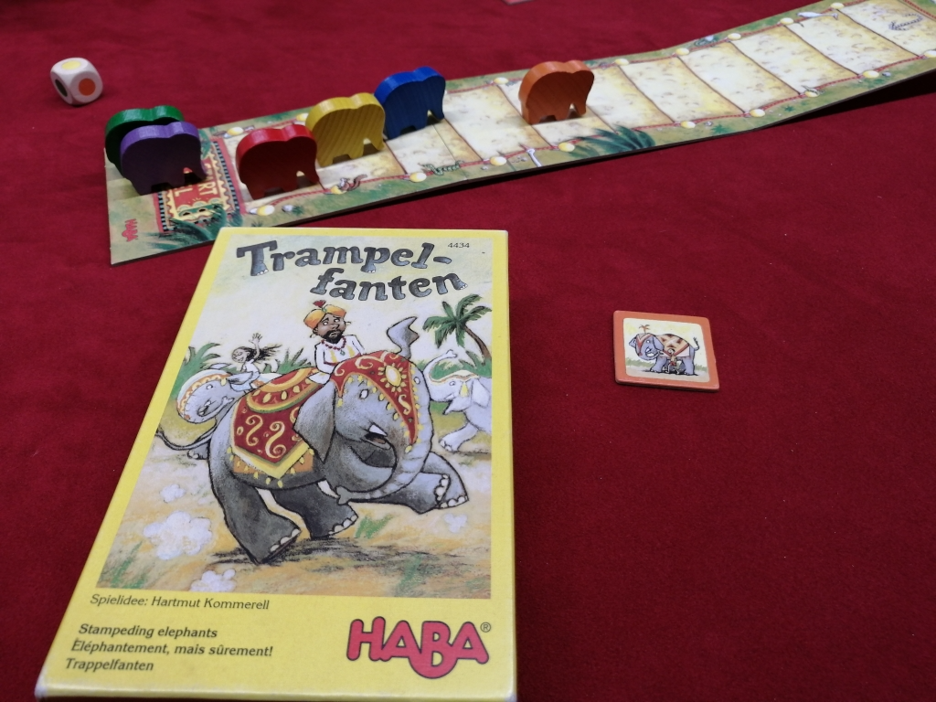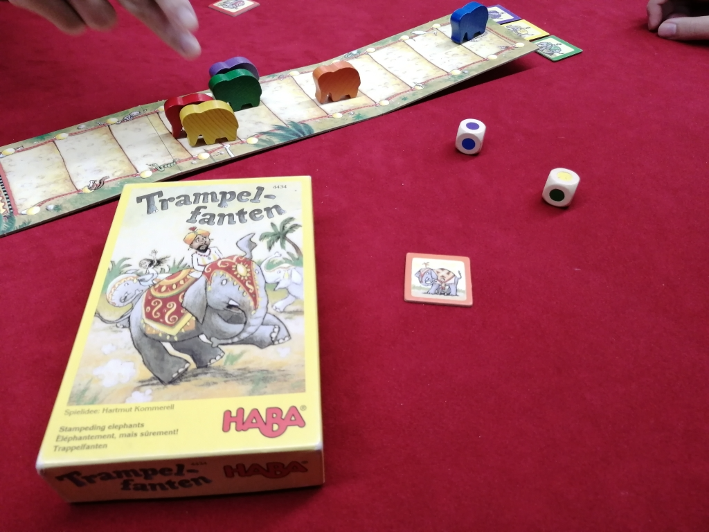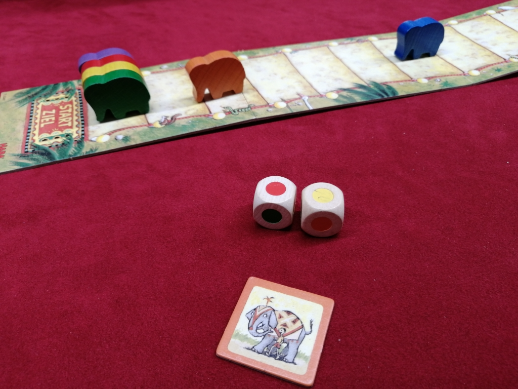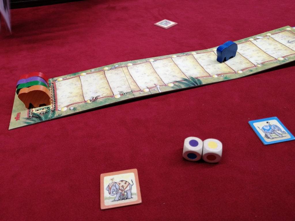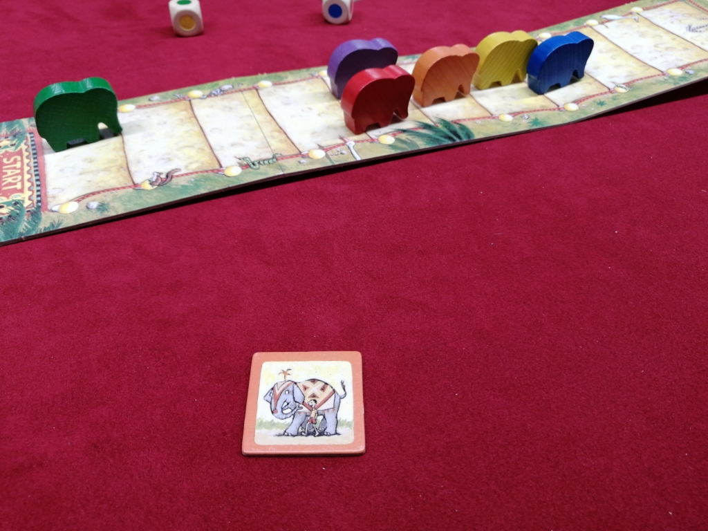 自分の担当したゾウが、できれば遅くゴールしたかったりするけど、ダイスを振って自他関係なくゾウは進んでいく。