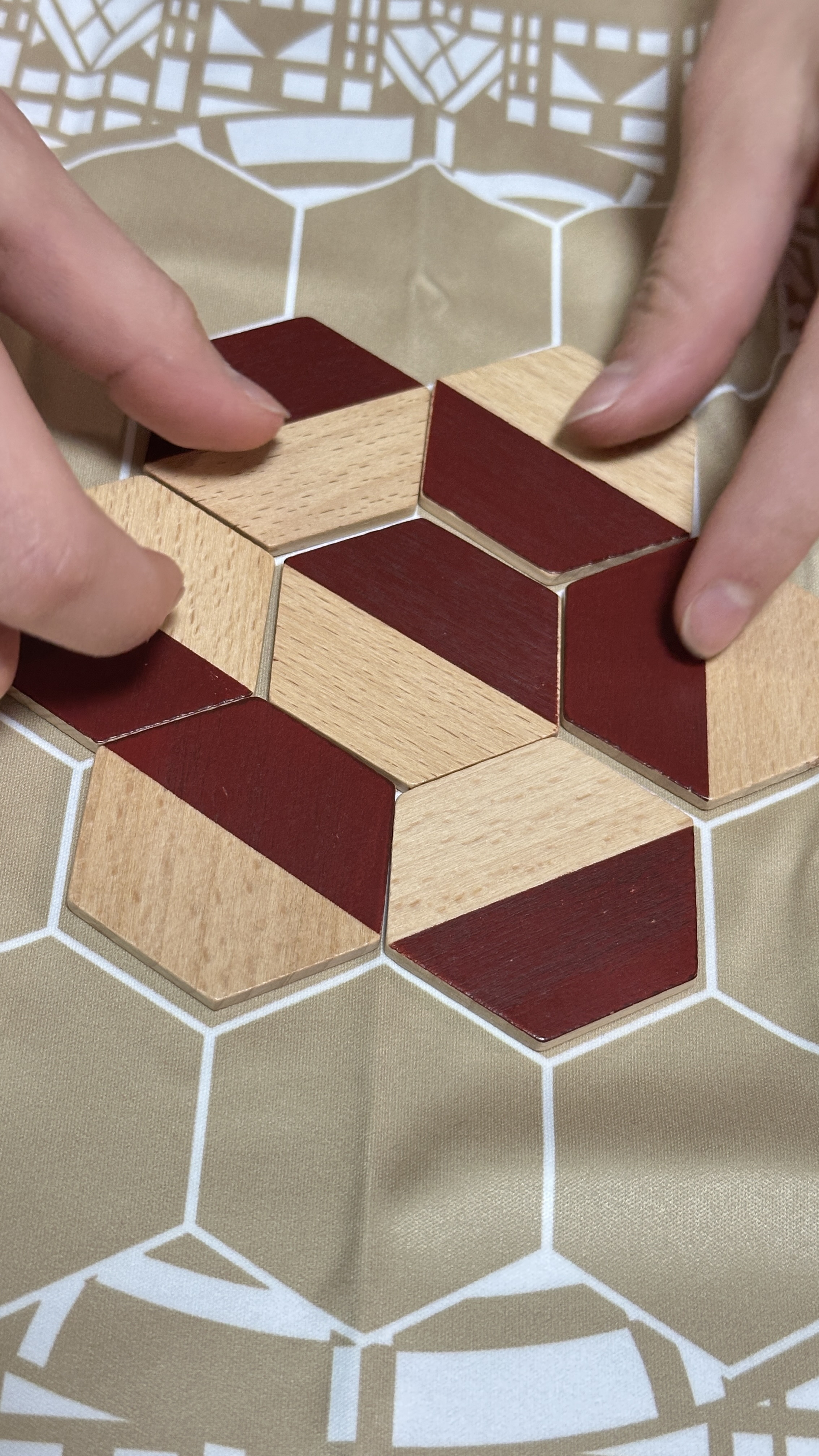(中心のタイルが囲まれたので、時計回りか、反時計回りで60度回転させる。)