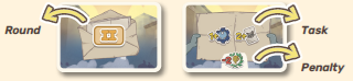 ラウンド中は、公開されたカードの表面に記載されているタスクを完了する必要があります。ラウンド終了までにタスクが完了されなかった場合、カードに示された数の勝利ポイントを失います。次に、タスクが完了したかどうかに関係なく、そのタスクカードを捨てます。