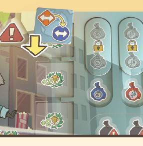 修理費を支払う:修理を行うとき、任意の必要なゴミ袋1つの代わりに2コインを消費することができます。 これは、超高層ビル地区の中央セクターにある修理アクションにも当てはまります。 |