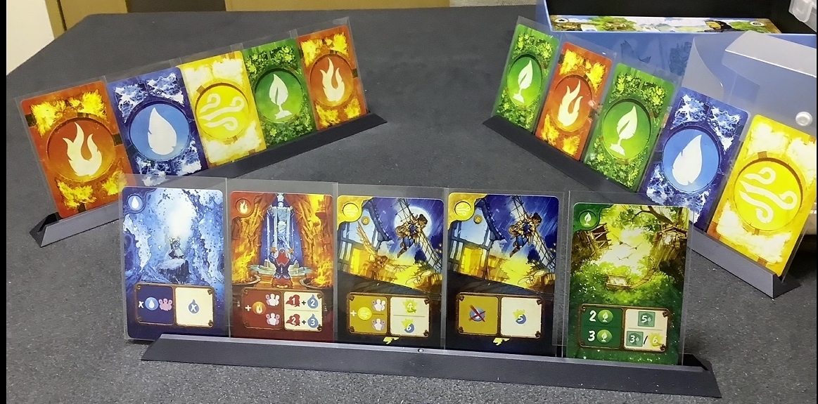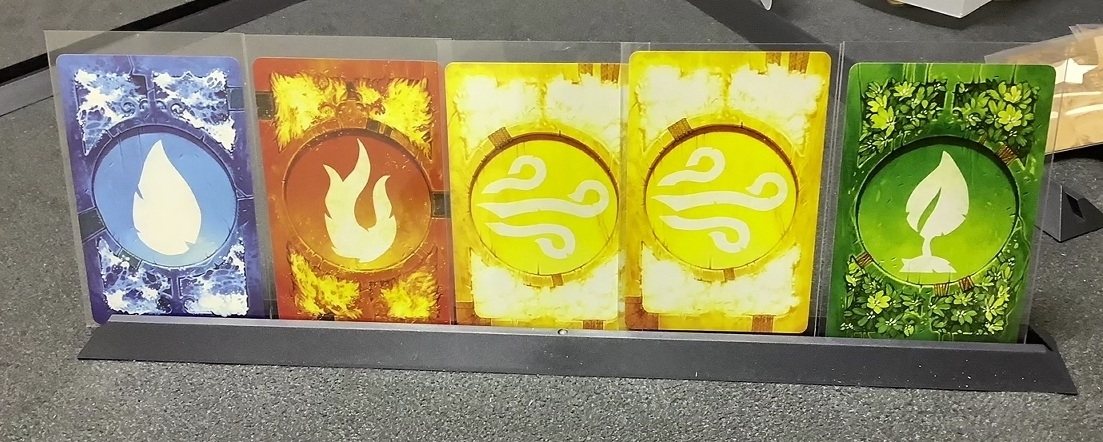 そして使ったカードの補充は裏面で4枚並べられた中から裏向きで並べられており、その中から属性だけわかった状態で引くというものなのですが、属性カードの方向性はある程度あるのですが・・・