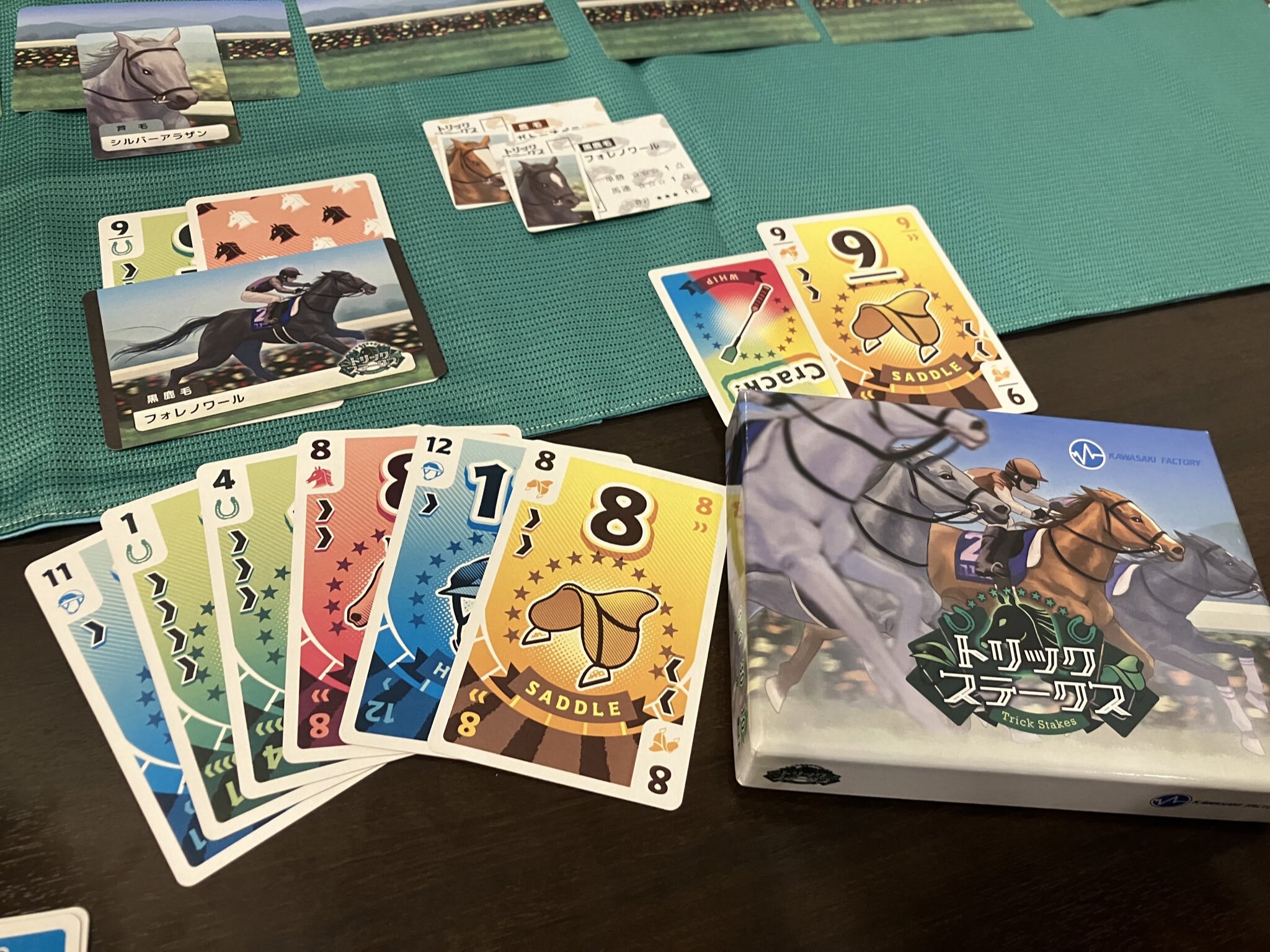 小さい数字でトリテに勝つと馬は大きく進むので、勝負所では切り札指定の鞭カードを使いましょう!