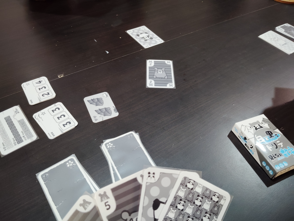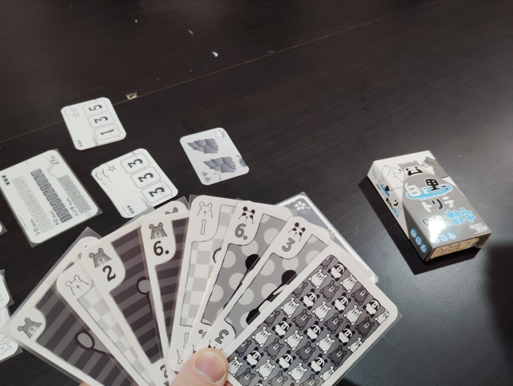 スートは白クマと黒クマとパンダで、白クマと黒クマの数字は1〜10、パンダの数字は1〜7になっています(3人プレイ時)。