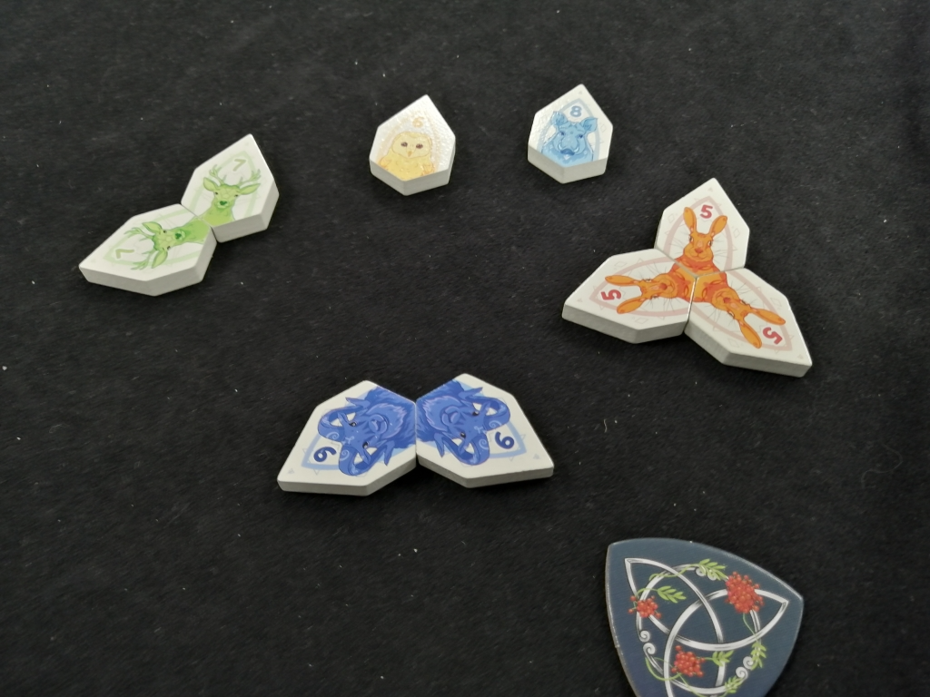 6種各10枚の動物タイルがあり、集めた各動物はちょうど3枚なら数字の得点をゲーム終了時に獲得。