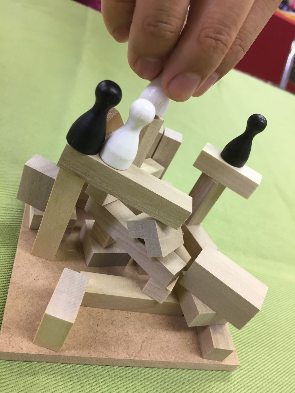 木材を積み上げつつ、自分のコマを上に上に置いていくゲームです。