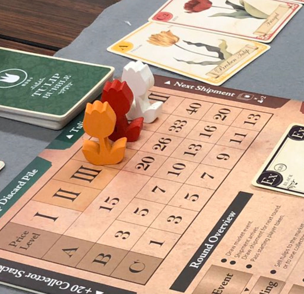 プレイヤーは競りで購入したチューリップを売却し、その差額で利益を得る。ラウンド毎に相場が変動し、バブルが崩壊するとただちにゲームが終了、その時点で手元にあるチューリップは無価値となり、現金のみが勝敗を決するという仕組みだ。