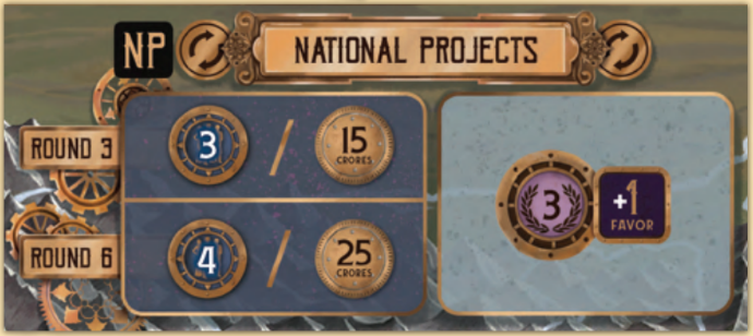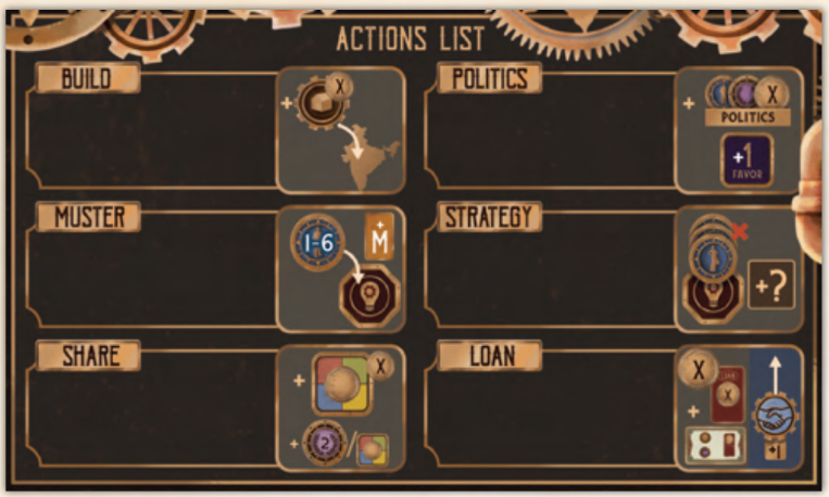 タイクーン:インディア 1981は7ラウンドでプレイされ、ラウンドトラッカーで記録されます。各ラウンドは4つのフェイズで構成され、以下の順に進みます。