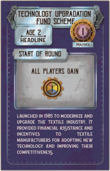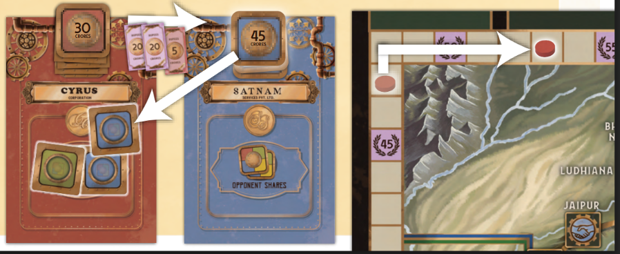 ゲーム「タイクーン」では、プレイヤーはインドの大手企業を代表し、政府から権利を取得し、インドの地図上に工場を建設することで、鉱物、燃料、農業、電力、輸送、金融という6つの主要産業セクターの支配を目指します。目的は富裕層になることですが、国家政策を自らの利益となるよう導き、政治的支持を得てあらゆる因縁を断ち切り、一連のラウンドで富と名声のバランスを取らなければなりません。そして最終的に、勝者となる一人のプレイヤー、つまり「大物実業家(タイクーン)」が決定されます。