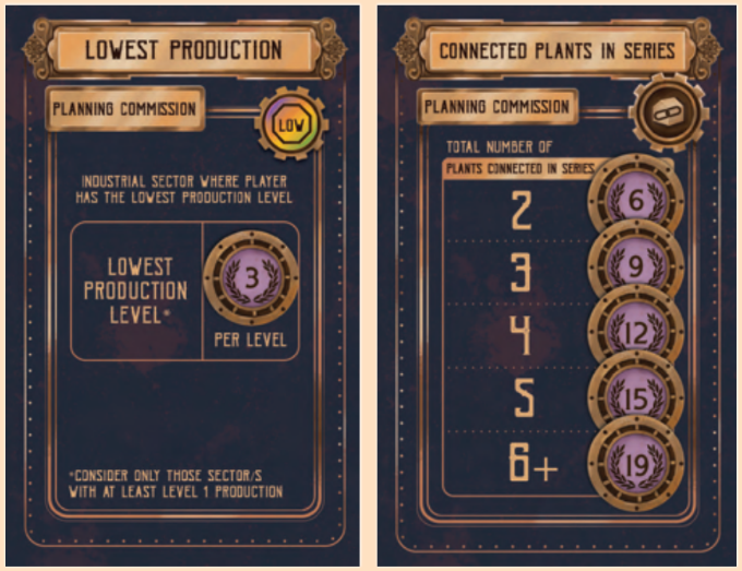 最後に、マップボードの指定されたスロットに政策カード2枚と産業カード3枚を配置します。ラウンドマーカーをボード上のトラッカーのラウンド1に移動します。