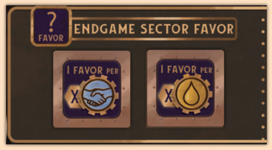 8. ゲーム終了時のセクター支持トークン5枚をシャッフルし、2枚を選び、セクタートラックボードの指定エリアに表向きに置きます。