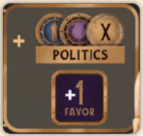 14. 選択した影響力値に応じて、プレイヤーはそれぞれ6、5、4、または3個のプロモータートークンを初期リソースとして獲得します。(つまり、7から〈選択した〉初期影響力を引いた値です。)