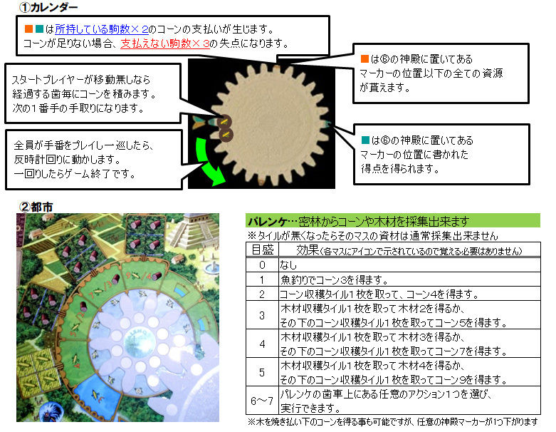 ・自分のターン終了時にカレンダーの歯に置いていたコーン全てを入手出来ます。