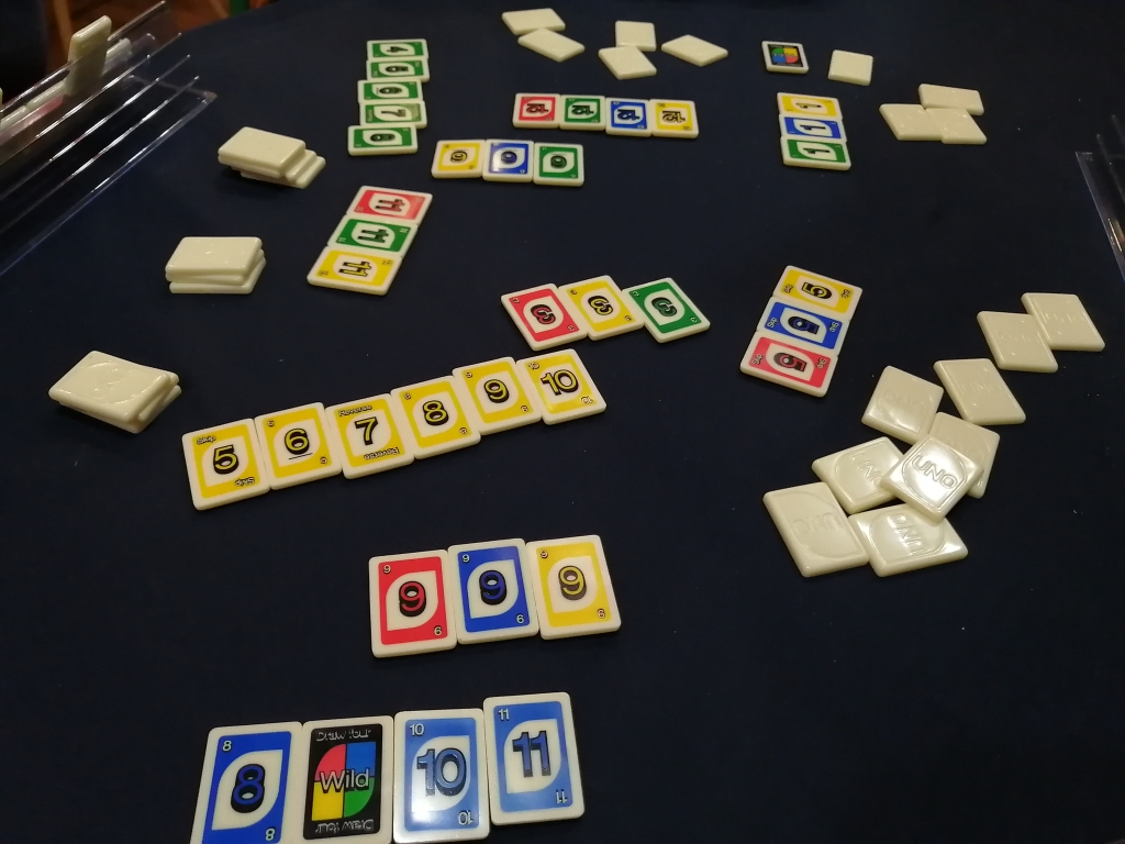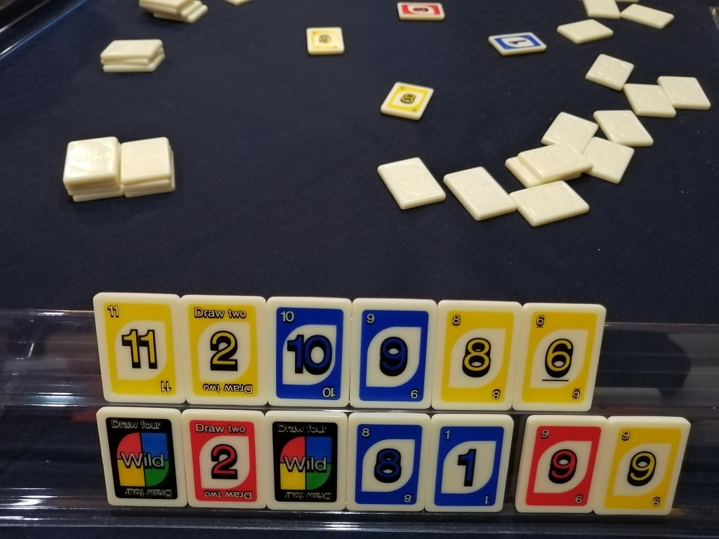 ドローツー、スキップがあるので理不尽を押し付けられるのと残り1枚だけになったら「ウノ!!」と宣言する必要があるので宣言を忘れないようにしないとね。