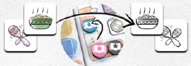 D) テーマ: スケッチブックを出版すると、各カードの左下隅にあるアイコンに従ってテーマタイルを取得します。