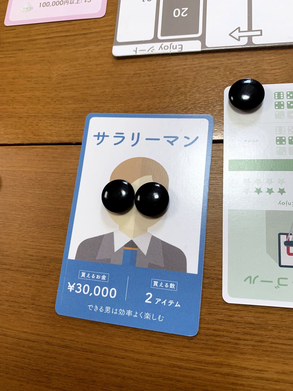 このゲームではフリマに自分が買ったモノを他の人に売ってお金でまた新しくモノを買う…お金を多く稼いだ人が勝ち!…というわけではなく、買ったモノを使ってエンジョイポイント(楽しんだ点数)を多く持っている人が勝ちになります!