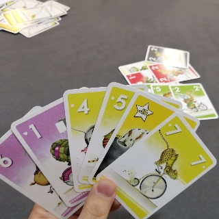 出せない、出したくないならソフトパスができて、全員がパスするまでぐるぐると手番はまわる。1のカードだけは、プレイした際に1のカード枚数分だけ1人のプレイヤーの手札からランダムに引いて手札に加えて、引いた枚数を返す。