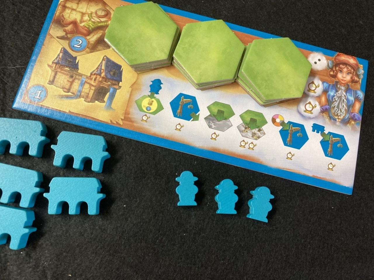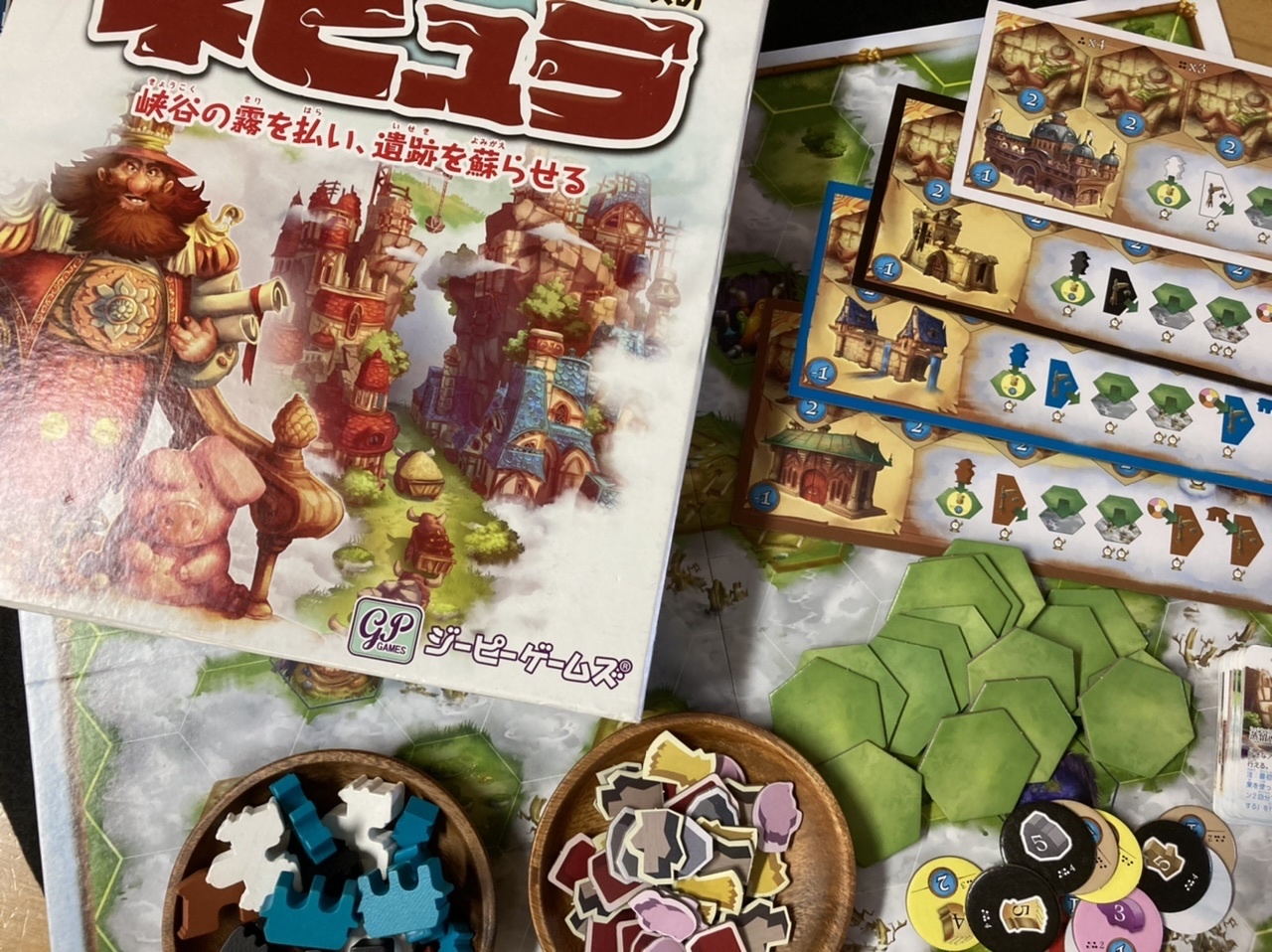 コミカルタッチで描かれたイメージから、比較的難易度の低い交渉・建設のゲームに見えますが、やっぱりこの有名デザイナーが手掛けただけあって、エリアの確保と資源の調達が非常に厳しい、思考性が非常に高いゲームでした。